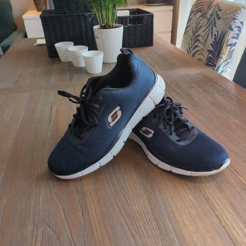Selger Pier One joggesko i svart. Skoene er liten i størrelsen, og str. 40 passer best for deg som vanligvis bruker 39 eller 39,5.