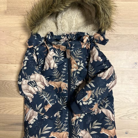 Newbie jakke for gutt i størrelse 128. Jakken har grønn bunnfarge med dyremønster. Den har hette med fuskepelskant og mykt fôr på innsiden. Lukkes med glidelås og klaff med trykknapper foran. Jakken har lommer i front og ribbekanter ved ermene for bedre passform. Egnet som ytterjakke i kjøligere vær.
