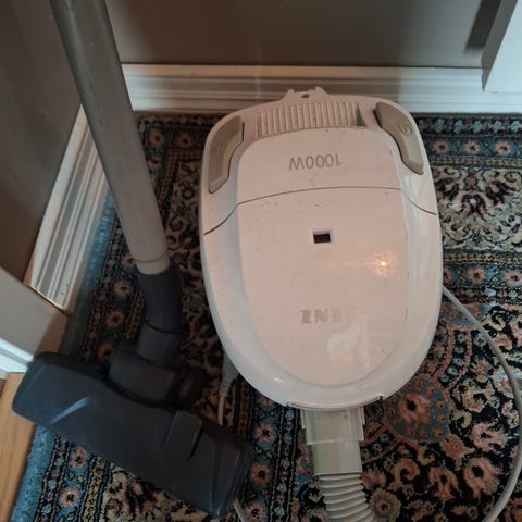 Enkel støvsuger som fungerer godt. Jeg har fjernet feste til posen innvendig, slik at den passer med billige universalposer.