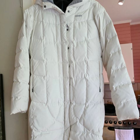 Timberland dunkåpe selges billig. Dette er en lett, behagelig og god og varm dunkåpe - perfekt nå i kulden! Selges fordi jeg har kjøpt en ny, og da blir denne til overs. Det er fortsatt mye bruk igjen. Den har vært vasket og tørket i trommel i fjor vinter (ikke brukt vinteren 2025/2026), men jeg ser at det er noen flekker på høyre arm. Mulig de enkelt forsvinner ved ev. ny vaskerunde.