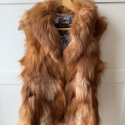 Veldig pent brukt vest av kanin i brune og grå sjatteringer. Det er ca størrelse S-M