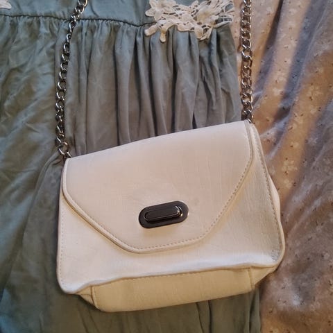 Søt liten hvit skulderveske fra Bikbok selges da jeg har mange hvite vesker, noen bruksmerker på innsiden som vist på bildet. Kan gis vekk ved kjøp av noe annet på profilen min🤍😊