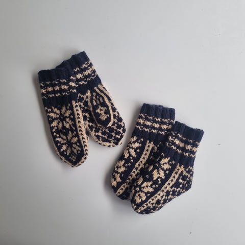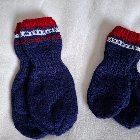 Ullvotter str 5-6 år, strikket i Tumi/sterk og spøt.