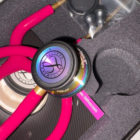 ADC ADSCOPE 603 stetoskop i rød farge. Brukt en gang, selges bare fordi jeg bytter studie. Må hentes på Nøtterøy