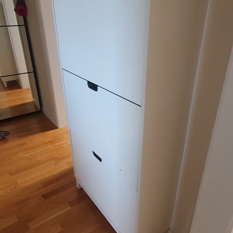 Pent brukt skoskap fra Bohus selges da vi ikke har behov for det lengre. Den har en liten skade på venstre side av skapet bak mot veggen(se siste bilde).