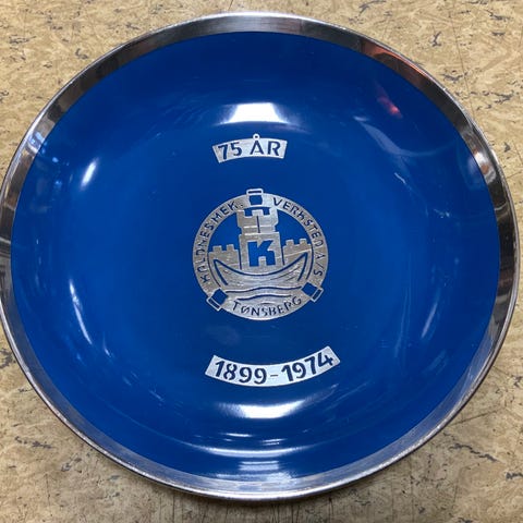 Askebegeret er 18 cm i diameter, og er i god stand.