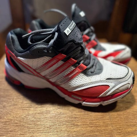 Adidas Questar løpesko i størrelse 39. Modellen er laget for løping og har overdel i pustende mesh med syntetiske forsterkninger. Skoene har hvit hovedfarge med lyse detaljer og Adidas-striper på sidene. Mellomsålen er kraftig dempet for komfort ved løping og gange, og yttersålen har mønster for grep på ulike underlag. Passer til løping og annen lett trening.