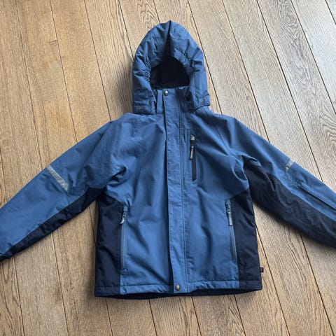 Vinterjakke / alpintjakke fra Helly Hansen str 152, modellen heter Summit. Jakken er brukt, men i fin stand uten stor slitasje. Har vært en runde i vaskemaskin og tørketrommel før salg.