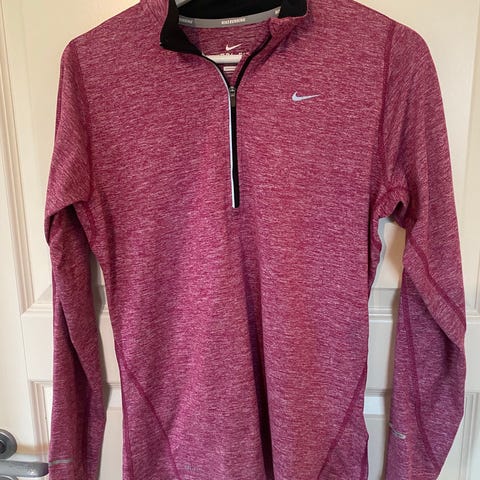 Nike løpetrøye for dame i størrelse M. T-skjorte med kort erm, rund hals og lett, tynn konstruksjon. Fargen er hvit. Egnet til løping og annen trening der man ønsker et lett og luftig plagg.