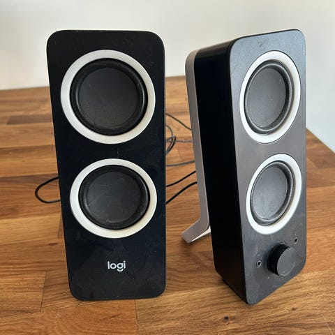Logitech Z150 PC-høyttalere med total uteffekt på 6W. Kablet tilkobling via 3,5 mm minijack. Volumkontroll og av/på-bryter på fronten av den ene høyttaleren. Kompakte, svarte stereohøyttalere egnet for bruk med PC, laptop eller andre enheter med hodetelefonutgang.
