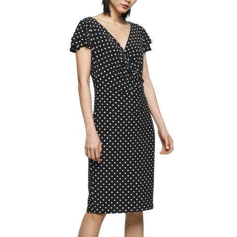 Lekker mønstret kjole fra Ralph Lauren. V-utringning og fast omslag. Korte ermer med små volanger. Kongeblå med hvitt og rødt mønster. Tykk, tung og eksklusiv kvalitet med for og god elastikk. Flatterende passform og veldig behagelig å ha på. Leveres skånsomt vasket og klar til bruk.