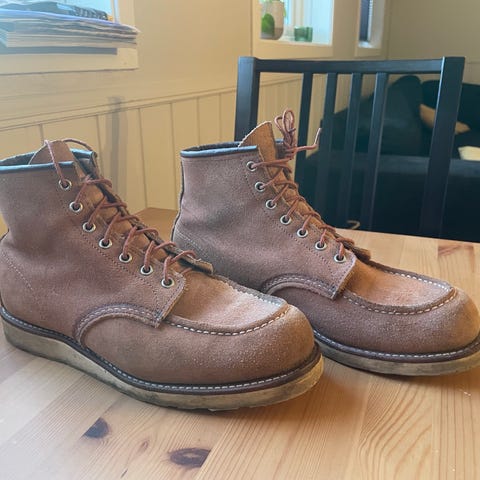 Skikkelig fine sko som passer til mange tilfeller. Red Wing er kjent som en kvalitetsmerke, og deres skor lages i USA med så kalt Goodyear Welt: altså randsydde såle. Dette innebærer at sålen kan byttes ut når den er sliten hvilket forlenger livstiden for skoen, hvis en tar godt hånd om læret. Opprinnelig designet som arbeidsskor - disse er lagde med kvalitet og slitestyrke i grunntanken.