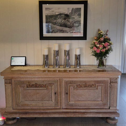 Må bæres at minst 2 sterke personer. Det er et tungt , kjempeflott møbel 🩷
