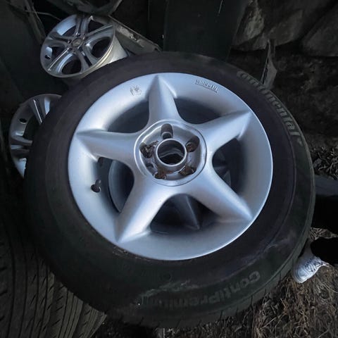 Eldre pigg dekk men greie bmw aluminiums felger, stått på e36