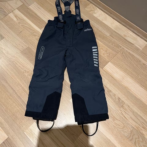 Reflex utebukse for barn, unisex, i størrelse 98. Nypris 699,- Buksen er grå og har seler for bedre passform. Refleksdetaljer på benet gir økt synlighet. Forsterkede partier nederst på bena for bedre slitestyrke. Vannsøyle: 18 000. Egnet som ytterbukse til bruk i barnehage og utendørs lek.