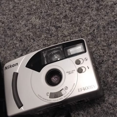 Nikon W35 kompaktkamera for 35mm film i svart utførelse. Kameraet er et analogt point-and-shoot-kamera med innebygd blitz og fast objektiv. Filmrom, bakdeksel og betjeningsknapper vises på bildene. Kameraet har håndrem festet for enklere håndtering. Egner seg til generell fotografering med 35mm film. Spesifikke tekniske data som lukkertider og blenderinnstillinger er ikke oppgitt på kameraet og bør eventuelt sjekkes mot bruksanvisning eller teknisk dokumentasjon for modellen.