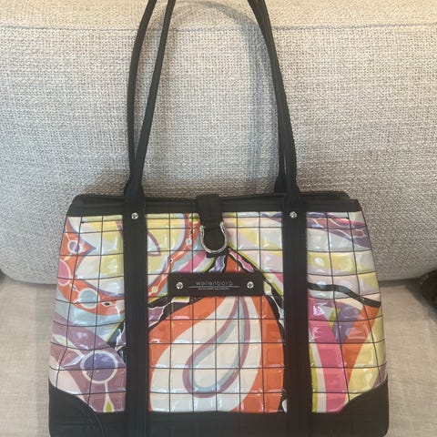 Veske fra Onyx med gitar design og glidelås formet som plekter.
