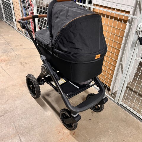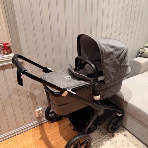 Bugaboo barnevogn i svart. Vognen har justerbar kalesje med Bugaboo-logo og sitteenhet med fempunktssele. Under vognen er det en oppbevaringskurv for bagasje. Håndtak og ramme er utformet for enkel manøvrering. Passer til hverdagsbruk på ulike underlag, både inne og ute.