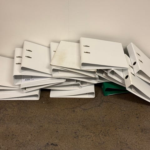 ringpermer i A4-størrelse. Permene har metallringer og gripehull på ryggen for enkel håndtering. Egnet til oppbevaring av dokumenter, skolepapirer eller annet A4-innhold. Laget i stiv papp med glatt overflate. Gir bort 4 stk