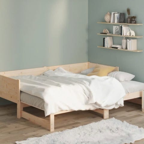 Uttrekkbar sovesofa: Denne dagsengen av tre kan brukes som sofa om dagen eller som seng om natten, og gir en rask løsning for overnattingsgjester samtidig som den sparer plass.