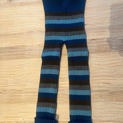 Ribbestrikket ullbukse fra Nøstebarn i str 86/92. Et hull på baksiden er sydd igjen, se bilde.