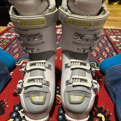 Head alpinstøvler i svart og hvit farge. Støvlene har fire justerbare spenner i metall og polstret innersko for støtte og komfort. Sålen er utformet for bruk med standard alpinbindinger. Egnet til alpint bruk i preparerte bakker.