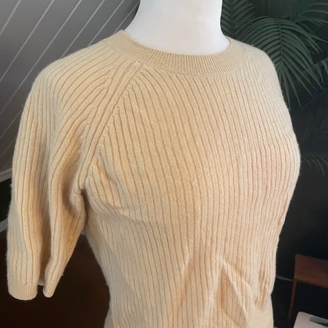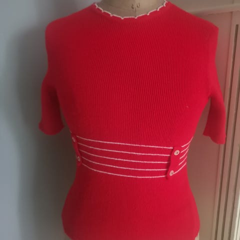 Gina Tricot topp for dame i størrelse M. Toppen er rød og laget i polyester. Modellen har kort erme, høy hals og ribbestrikket, ettersittende liv som gir en markert midje. Glidelås i ryggen for enkel av- og påkledning. Passer til bruk alene eller under jakke eller blazer.