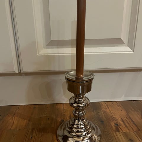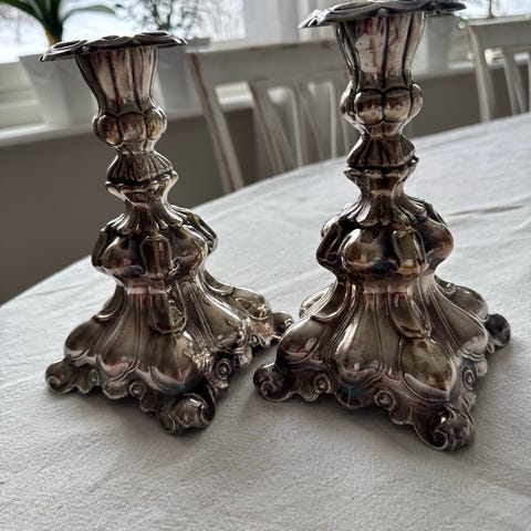 &Tradition lysestake i metall. Klassisk lysestake med dekorative detaljer på stammen og rund fot. Passer til standard kronelys og kan brukes som bord- eller vindusdekor i ulike rom.