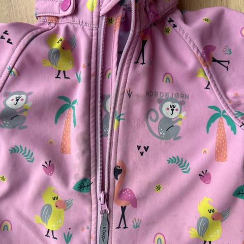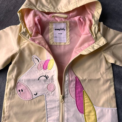 Nordbjørn softskjell jakke med enhjørninger på. Jakken er en perfekt vårjakke i barnhagen. Den er kun brukt av ett barn.