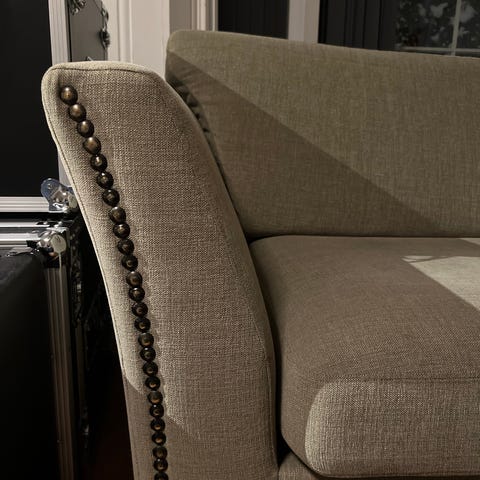 Pent brukt sofa i nydelig rødfarge. Ikke slitt….Lenestol har noe slitte stolermer.