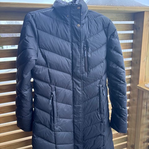 Peak Performance TAYLOR II dunjakke for dame i størrelse XL. Lang, svart jakke med gjennomgående glidelås foran og glidelåslommer i sidene. Fylt med dun for god isolasjon. Ytterjakke egnet til bruk som varm hverdags- eller ytterjakke i kjøligere vær.