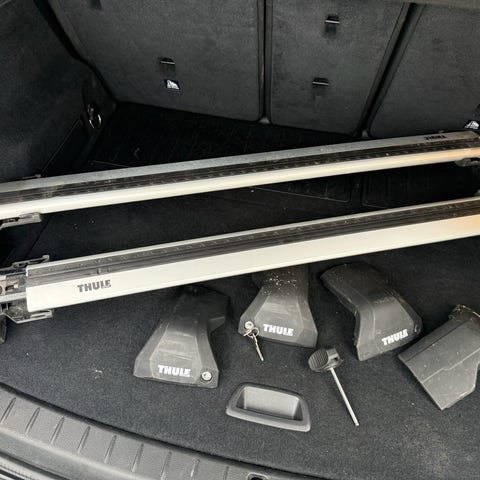 Thule takstativ lastebøyler i svart. Består av to tverrbjelker med føtter/fester for montering på bilens tak. Egnet som base for montering av takboks, sykkelstativ eller annet taklastutstyr som er kompatibelt med Thule-systemer. Lengde på bøyler fremgår av bildet med målebånd. Materiale er metall med plastdetaljer. Passform avhenger av bilmodell og riktig type festesett fra Thule.