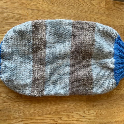 Håndstrikket hundegenser lilla flerfarget