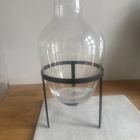 Tøff lyslykt i klart glass med metallholder. Lykten har sylinderformet glassbeholder og rund bunnplate i metall, med enkel bærekonstruksjon i metalltråd rundt glasset. Egnet til blokklys eller andre mindre lys. Kan brukes som borddekorasjon eller stemningslys innendørs. Lys medfølger ikke med mindre annet er oppgitt i annonsen.