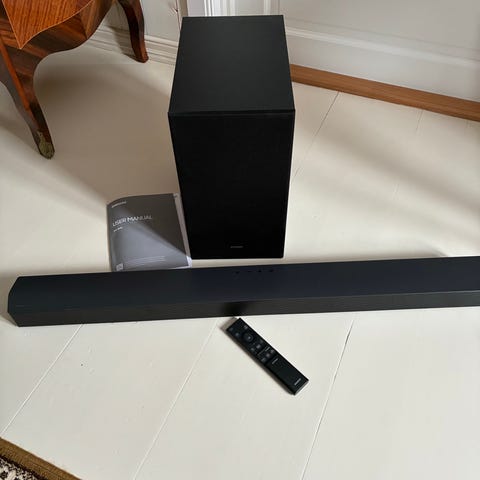 Flott lydplanke fra Samsung med fjernkontroll, kobles enkelt til via Bluetooth, HDMI eller Optisk lydkabel.