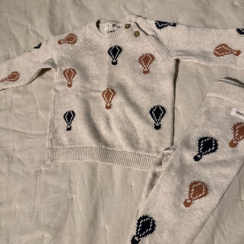 Gant sett barneklær i størrelse 86 for unisex. Sett består av hettejakke med glidelås og bukse i brun farge. Mykt, lodden materiale med ribbekanter i livet, nederst på jakken og ved anklene. Hettejakken har hette med små ører og brodert Gant-logo på brystet. Egnet som behagelig hverdags- eller koseplagg for barn i aktuell størrelse. Kjøpt ny av oss og kun brukt to ganger, så selges uten noen anmerkninger.