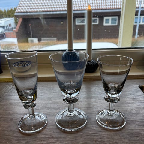 Hadeland Glassverk Marie dram, hetvin, likør - kr.350/stk.Cognac 500,-pr stk