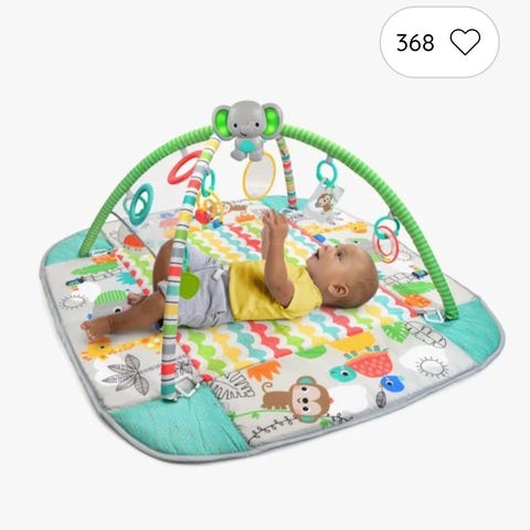 Brukt i kort periode til to barn. Leker følger ikke med, men kroker medfølger. Pute medfølger. Fine og sterke farger som baby liker. Matten er nyvasket.