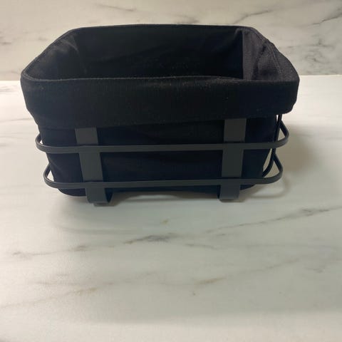 Trådkurv oppbevaringskurv i svart metall. Rund modell med åpne trådsider og to håndtak på hver side for enkel flytting. Egner seg til oppbevaring av for eksempel tepper, leker, puter eller klær i stue, gang, soverom eller bod. Kurven kan plasseres direkte på gulv og gir oversiktlig oppbevaring av innholdet.