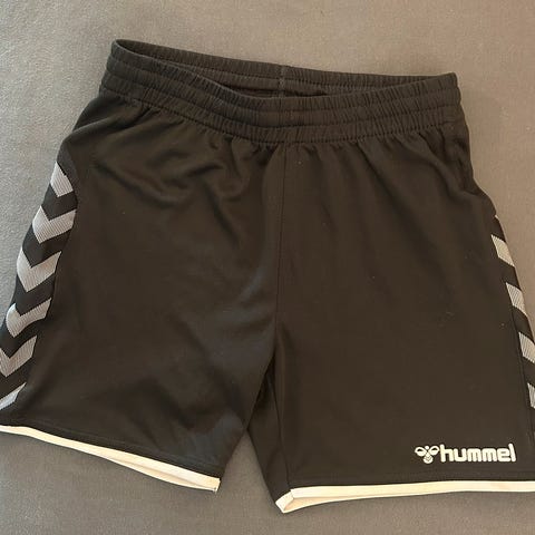 Hummel fotballshorts for barn i størrelse 140. Shortsen er svart med Hummels karakteristiske piler langs sidene og Hummel-logo nederst på benet. Elastisk linning med strikk gir god passform. Lett og funksjonelt materiale som egner seg til fotball og annen fysisk aktivitet for barn i denne høyden.