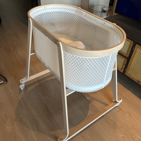 IKEA stellebord i tre i naturfarge. Stellebordet har en åpen konstruksjon med en øvre stelleflate og en nedre hylle til oppbevaring av bleier, klær eller annet utstyr. Rette ben og kant rundt øvre del gir en stabil og funksjonell arbeidsflate ved stell av baby. Mål ca.: bredde 72 cm, dybde 53 cm, høyde 87 cm.
