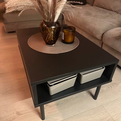 IKEA stuebord i hvit utførelse. Bordet har rektangulær bordplate og en ekstra hylle under til oppbevaring av for eksempel bøker, blader eller fjernkontroller. Passer som salongbord eller sidebord i stue eller oppholdsrom.