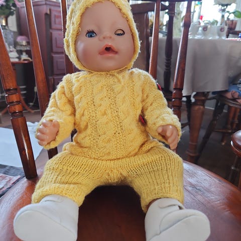 Sitter på en dukke som er 41 cm
