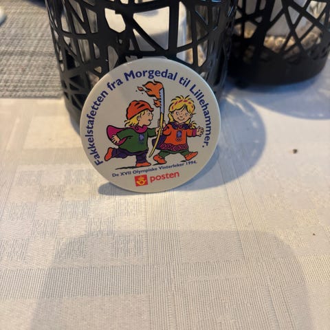 Lillehammer 94 OL pins i rektangulær form. Motiv med norsk flagg og tekst knyttet til vinter-OL 1994. Flerfarget emalje på metall. Egnet som samleobjekt eller til bruk på jakke, sekk eller lue.