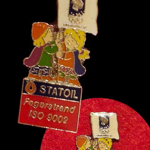 Statoil emaljepin med figurer