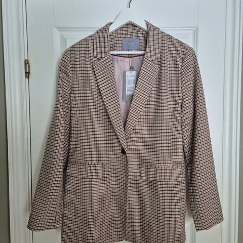 Lekker bouclet-jakke/ "chanel-jakke" i nydelige farger fra Gelco. Str 44. Ingen bruksmerker.