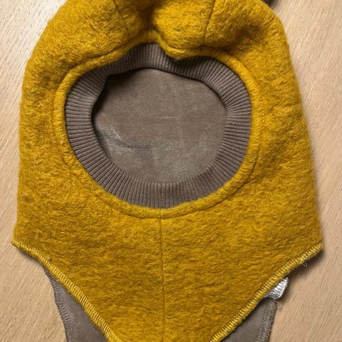 HUTTEliHUT balaclava med ull i str. 0-1 år. Yttersiden er i ull, med myk innside for komfort. Dekker hode, hals og delvis bryst for ekstra varme. Størrelse merket 0–1 år (47–49 cm).