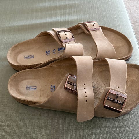 Scholl Sandaler i hvit farge med tre justerbare spenner over foten. Sålen er formet for fotbue og hæl. Størrelse 40. Passer til hverdagsbruk i varme perioder eller innendørs som tøfler.