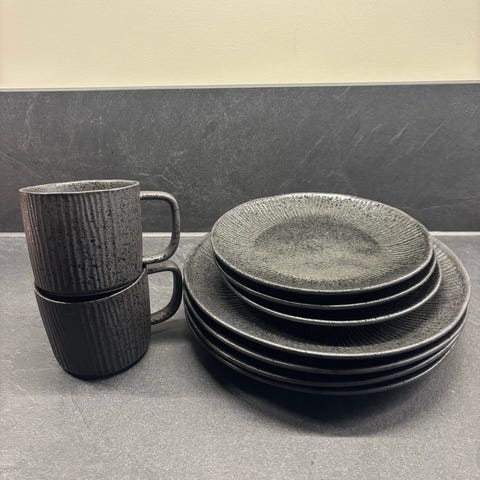 12 kaffekopper +kaffefat og 12 tefat. Et har skår i seg, se bilde. Resten uten noe spesiell skade. Hentes Skatval, sendes ikke☺️