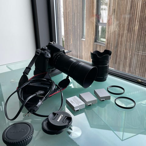 Canon EOS 700D digitalkamera med utskiftbart EF-S 18-55mm zoomobjektiv. Kameraet har en vridbar LCD-skjerm som muliggjør fotografering fra ulike vinkler. Passer for fotografering i ulike situasjoner og miljøer. Leveres med skulderstropp, bruker manual og cd, ledning, og original eske og ekstra batteri.Nesten ikke brukt. •2900kr